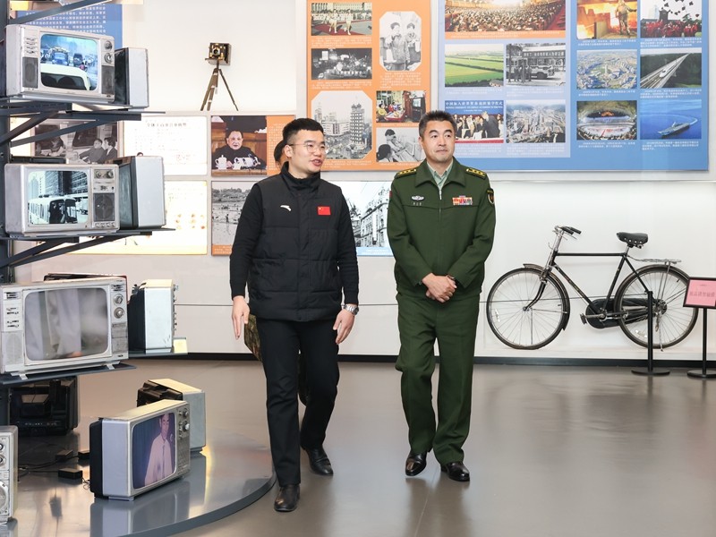 随后,施小武一行参观了学校中国共产党人精神谱系馆,在讲解员的引导下,认真聆听革命先辈的奋斗故事,深刻感悟中国共产党人精神谱系的丰富内涵与时代价值。施小武指出,中国共产党人精神谱系是激励青年一代投身国防、报效祖国的宝贵精神财富,要将红色精神传承与征兵工作深度融合,以精神引领凝聚报国力量,鼓励更多优秀大学生携笔从戎,在强军兴军的伟大征程中实现人生价值。