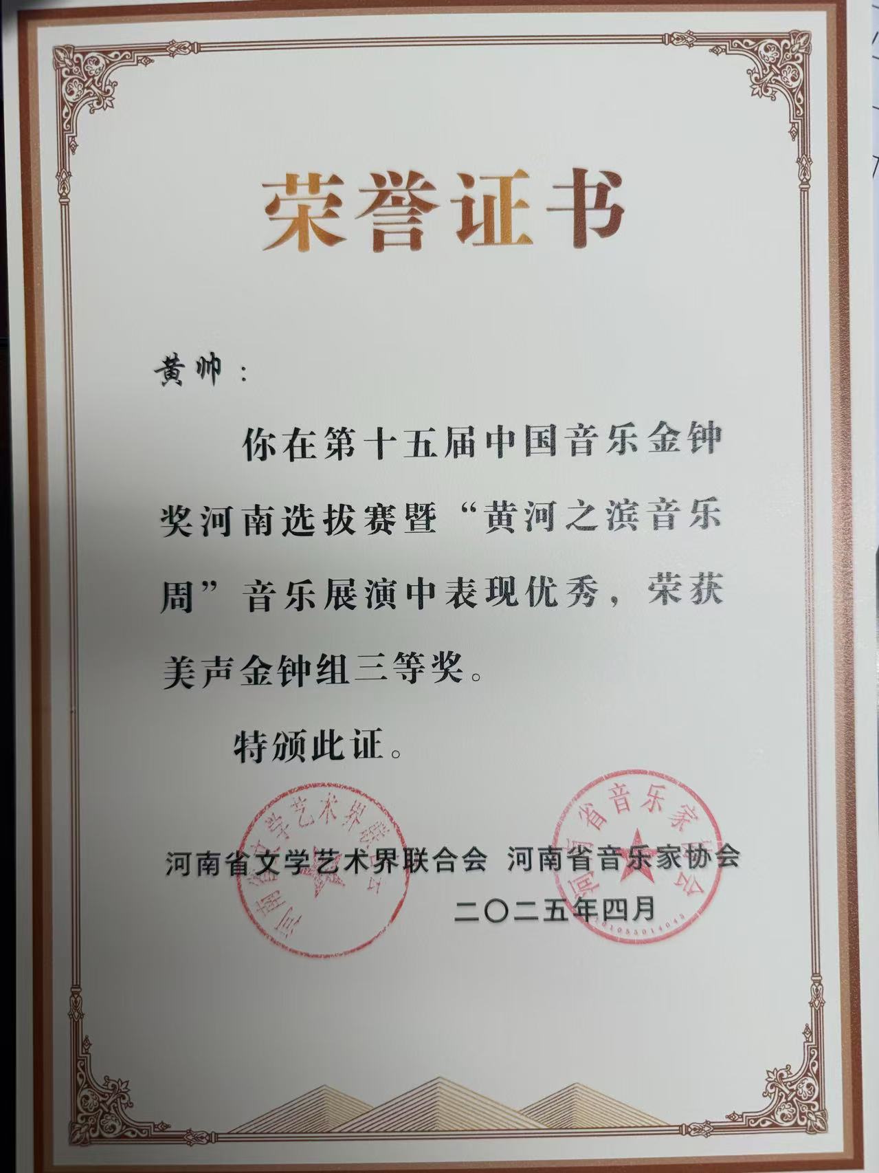 近日,从“第十五届中国音乐金钟奖河南选拔赛暨‘黄河之滨音乐周’音乐展演活动”赛事组委会传来捷报。经过与全省顶尖声乐高手的激烈角逐,我校艺术学院教师在此次高水平音乐赛事中表现亮眼。张艾娟老师成功晋级民族组决赛并荣获二等奖,黄帅老师则在美声组比拼中斩获三等奖。