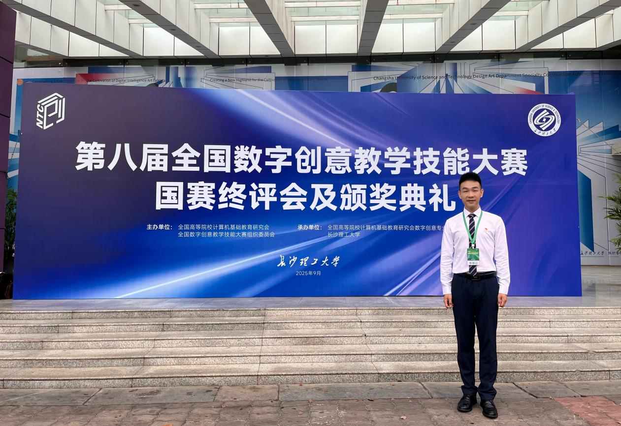9月27日,第八届全国数字创意教学技能大赛国赛终评会及颁奖典礼在长沙理工大学举行。我校艺术学院青年教师郭强凭借作品《广播电视节目主持2—新闻人物专稿播音》,作为影视艺术组河南赛区唯一入选的本科高校代表,与全国众多双一流高校、国家一流本科专业教师同台竞技,从全国574所高校、4581件作品、5620位参赛教师中脱颖而出,最终斩获高校赛道全国一等奖。