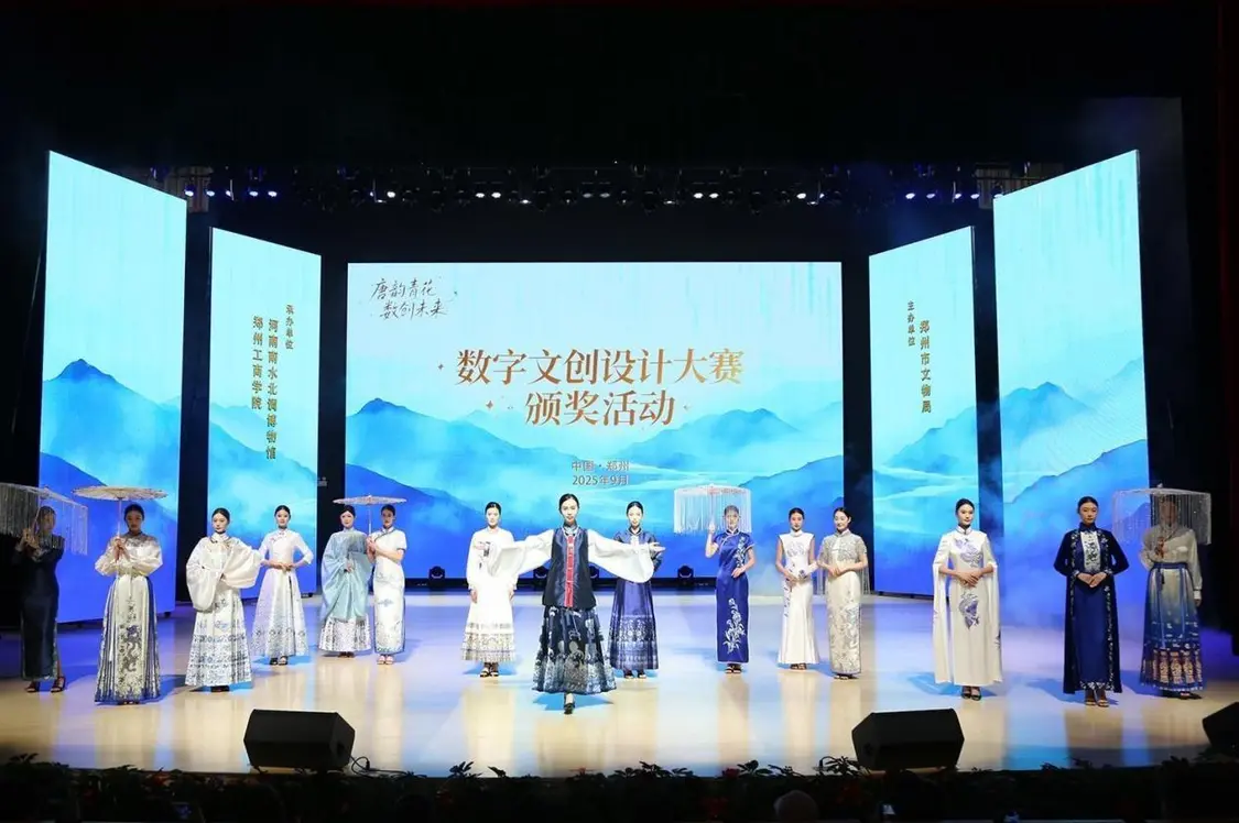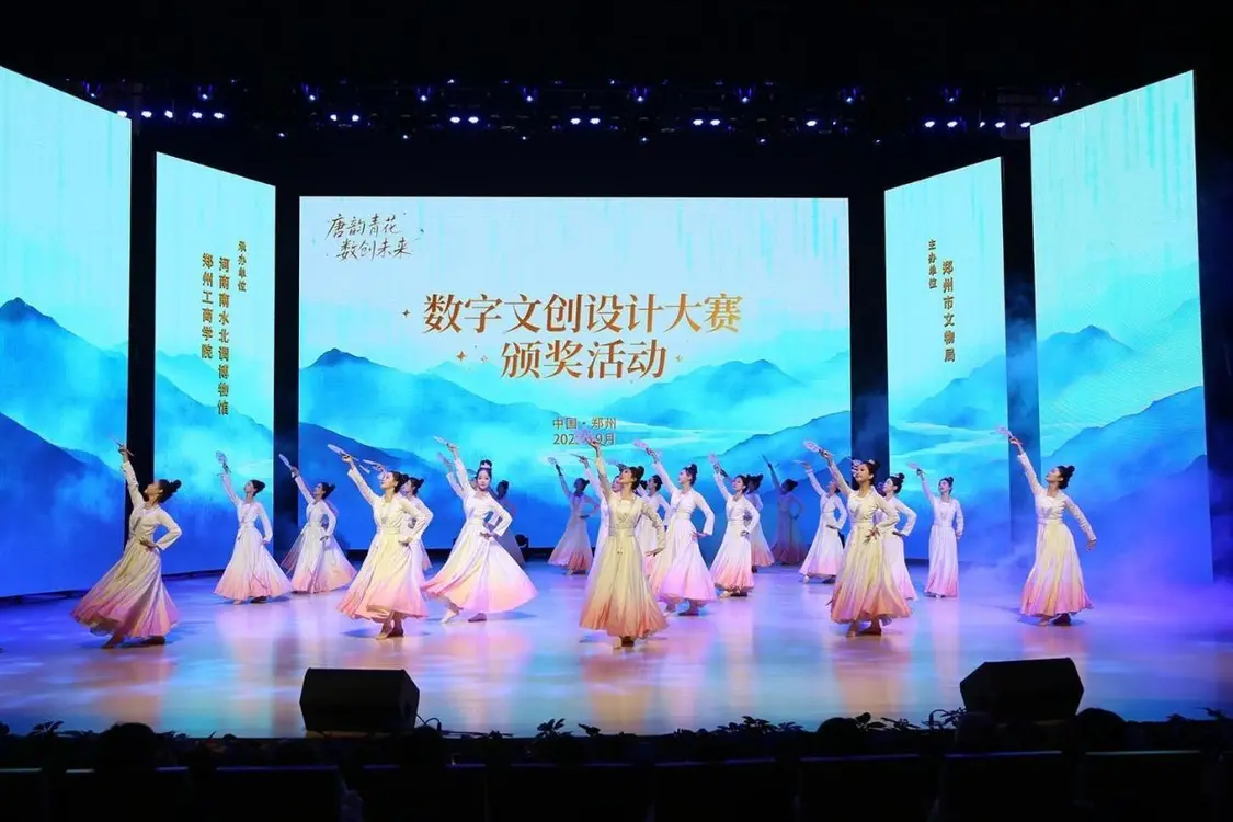 9月26日下午,首届“唐韵青花 数创未来”数字文创设计大赛颁奖活动在郑启幕。开场的数字动捕舞蹈瞬间点燃全场,实时捕捉的动作转化为灵动的数字光影,仿佛将唐青花瓷面上的纹样“唤醒”,完美诠释了“传统与科技共生”的赛事理念。